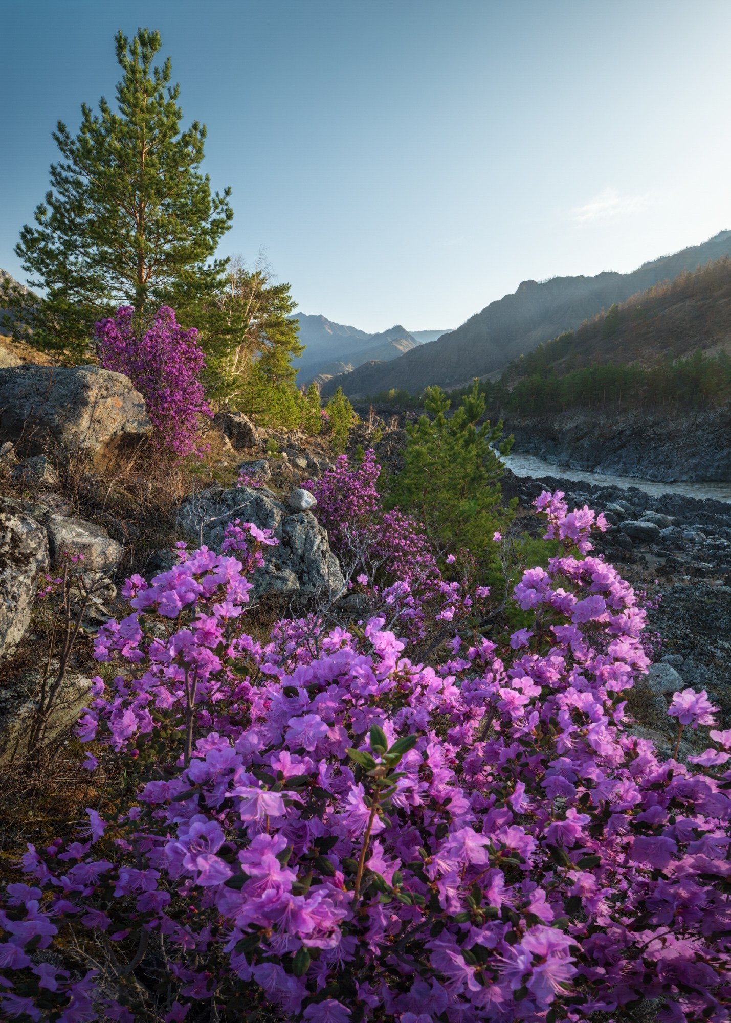 Время розовых склонов. Онгудайский район, река Чуя, май 2024